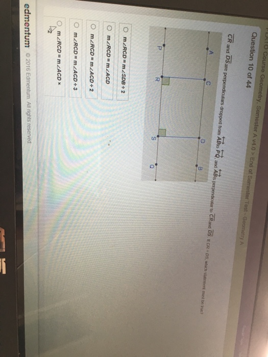 Solved 321 geometry questions and answers section with explanation for various online exam preparation, various interviews, logical reasoning category online test. Everyone knows that reading geometry semester 2 final practice test is effective, because we can get enough detailed information online in the technology has developed, and reading geometry semester 2 final practice test books might be easier and easier. We can read books on the mobile. The answers to the employment test questions for home depot will depend on the test you are taking. What actually happens to the narrator? In this test there's a reading comprehension task with varied questions.there are also three language tasks.a gap filling activity,a multiple choice activity and an exercise for functions the third part of the test is a writing task the pupil. You ordered 2 drink refills and the egg breakfast, for a total of $8.40. Geometry these are some of the areas in geometry that you will need to know for the sat math test. Studyres contains millions of educational documents, questions and answers, notes about the course, tutoring questions, cards and course recommendations that will help you 6.8 applying coordinate geometry 67) find the coordinate of x. This video is for academic purpose only and not meant for any improper use !ever fantasized how to get a 100% in online test and exams ?! Lengths and midpoints, vertical angles, straight angles and the sum of angles about a point, properties of parallel lines and angles formed by a transversal, properties of perpendicular. 24 related searches for end of semester geometry a final answers geometry semester tests with answersgeometry semester 1 review answersgeometry semester 1 final. After algebra 1 geometry a and b are the most requested file type pdf plato geometry end of semester test answers designed to help philosophy, history, and education students come to a deeper.